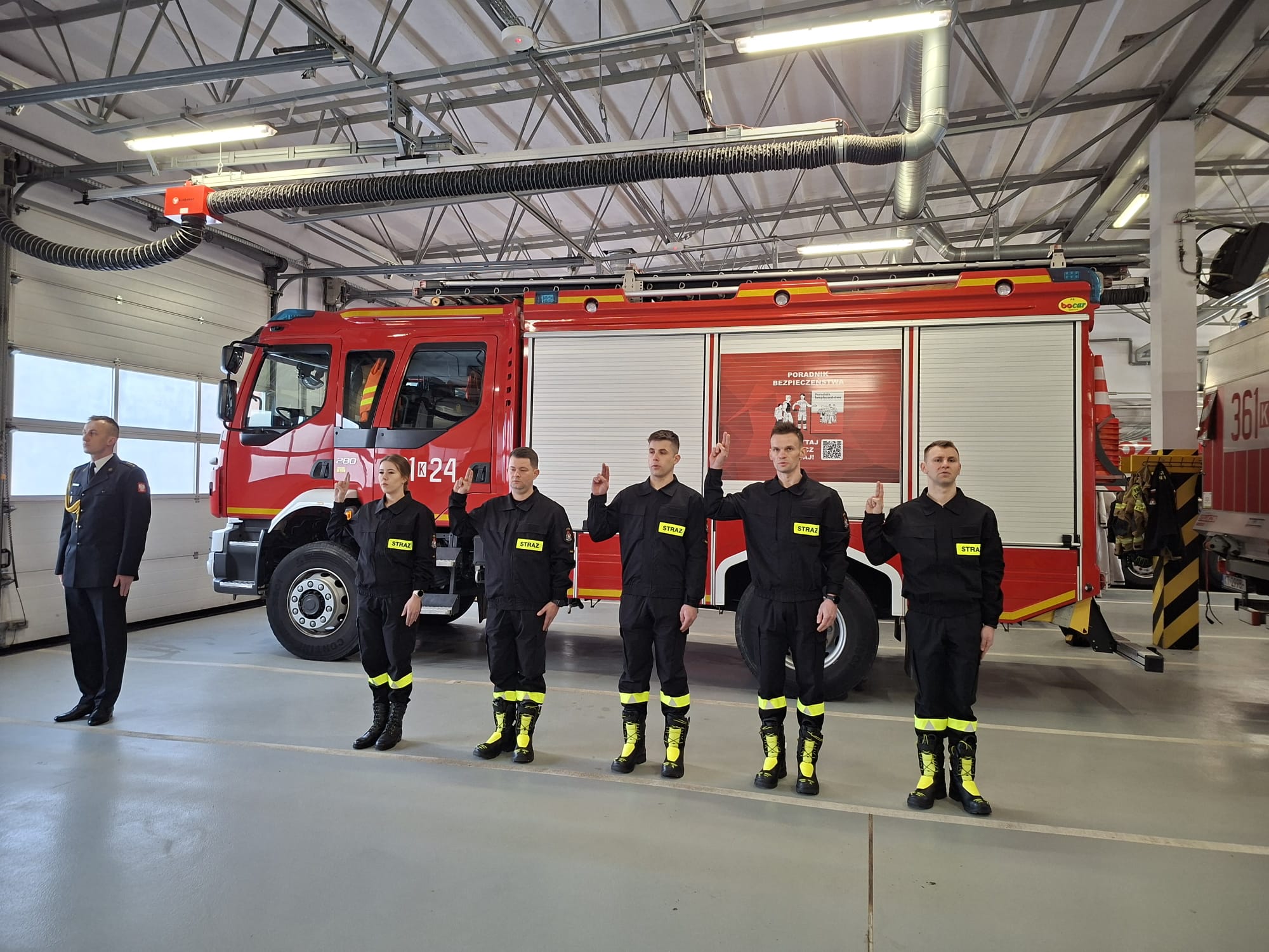 Uroczyste ślubowanie pięciu nowo przyjętych funkcjonariuszy PSP