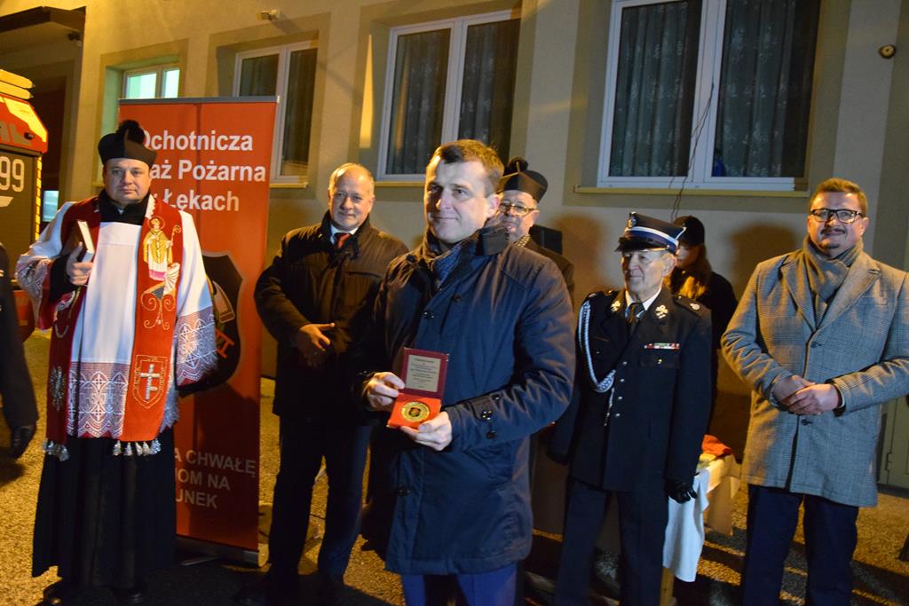 W piatek 15 grudnia 2023 r. na placu przed remizą Ochotniczej Strazy Pożarnej w Łękach odbyło się uroczyste przekazanie kluczyków i dokumentów do nowego lekkiego samochodu pożarniczego.
