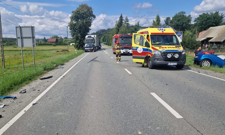 W poniedziałek 4 sierpnia 2025 r. około godziny 13.30 na drodze krajowej nr 75 w Uszwi doszło do wypadku z udziałem dwóch samochodów osobowych oraz ciężarówki. Poszkodowane zostały dwie osoby.