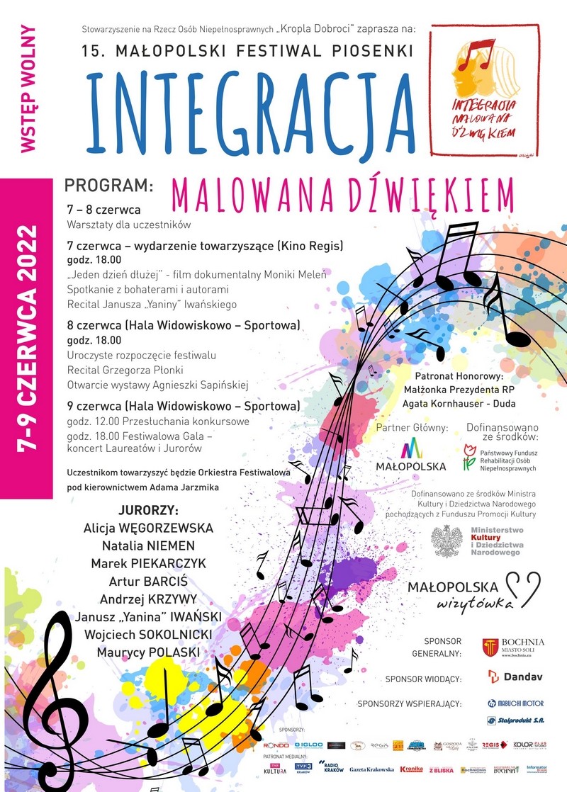 Zbliżamy się do wielkiego finału bocheńskiego święta muzyki. Święta integracji, nauki tolerancji, odnajdywania radości w małych rzeczach jak również rozwijania swoich pasji i talentów. Od wtorku Bochnia rozbrzmiała muzyką i stała się właśnie centrum magicznych wydarzeń, a to za sprawą wyjątkowego Festiwalu Piosenki „Integracja Malowana Dźwiękiem”, której organizatorem jest Stowarzyszenie „Kropla Dobroci”.