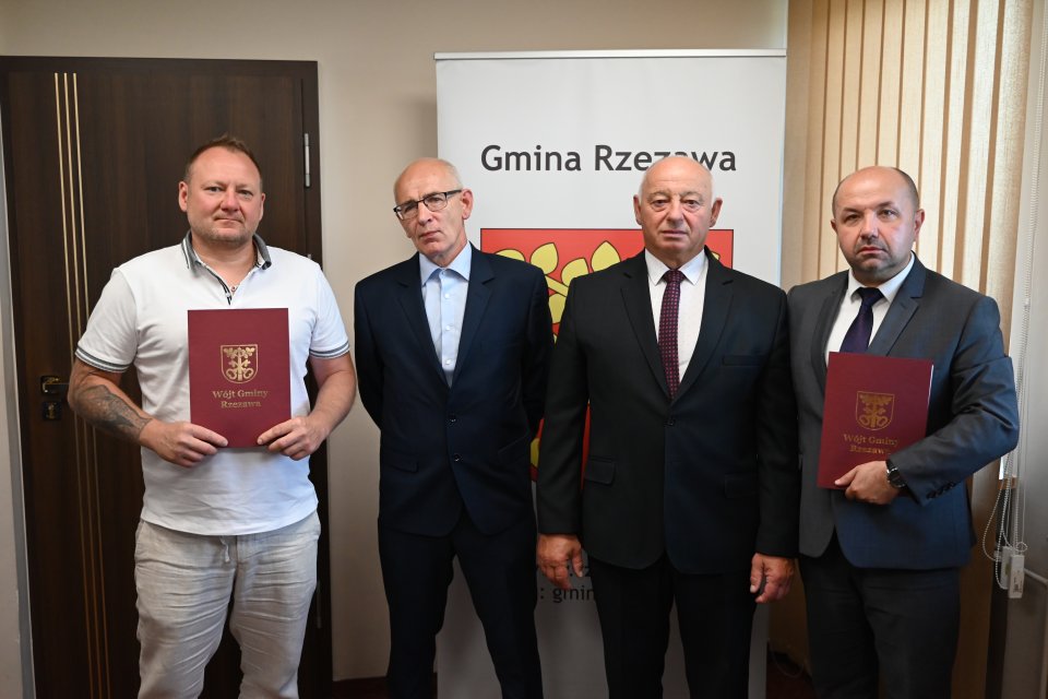 Zgodnie z umową podpisaną 8 lipca przez Wójta Gminy Rzezawa Zbigniewa Biernata z wykonawcą inwestycji, którym jest firma Kambud – w towarzystwie Radnego Gminy i Sołtysa Ostrowa Królewskiego Waldemara Małka oraz Członka Rady Sołeckiej Janusza Rysaka – zakończenie prac planowane jest na połowę kwietnia 2026 roku.