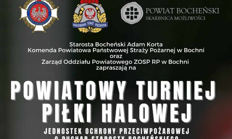 W najbliższą sobotę strażacy będą rywalizować o puchar starosty bocheńskiego w Powiatowym Turnieju Piłki Halowej jednostek ochrony przeciwpożarowej. Piłkarskie rozgrywki odbędą się 9 grudnia o godzinie 10:00 w hali Zespołu Szkół Nr 1 w Bochni!