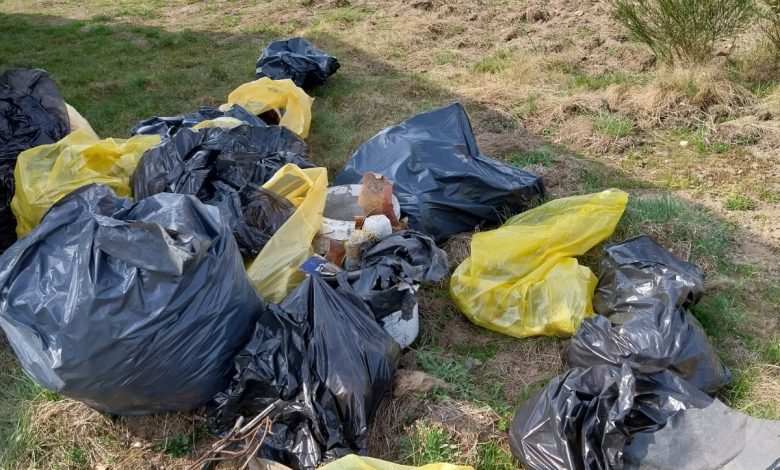 Podczas akcji sprzatania zorganizowanej w 2023 r. zebrano 5 worków odpadów z tworzyw sztucznych oraz 3 worki ze szkłem. Mało? Taki wynik był tylko dlatego, ze kilka dni wcześniej pracownicy Zarzadu Dróg Powiatowych zebrali część (większość?) śmieci w pasie drogowym.