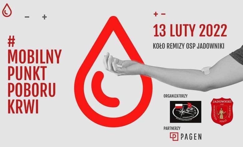 OSP Jadowniki, HDK MOTOJADOWNIKI oraz firma Pagen organizują w najbliższą niedzielę 13 lutego akcję honorowego krwiodawstwa. Krwiobus z Regionalnego Centrum Krwiodawstwa i Krwiolecznictwa w Krakowie zaparkuje przed remizą strażacką w Jadownikach. Krew będzie można oddać od 10.00 do 14.00.