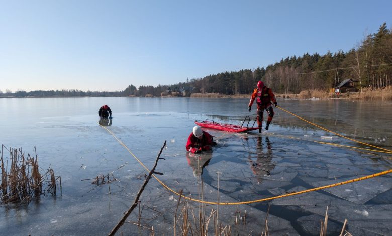 Wierzchosławice. Ćwiczenia z zakresu ratownictwa na zbiornikach wodnych w okresie zimowym
