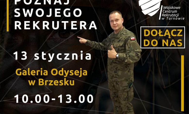 W sobotę – 13 stycznia 2024 r. pracownicy Wojskowego Centrum Rekrutacji (WCR) z Tarnowa zagoszczą w Brzesku, gdzie w galerii handlowej Odyseja będą zachęcali do wstąpienia w szeregi Wojska Polskiego.