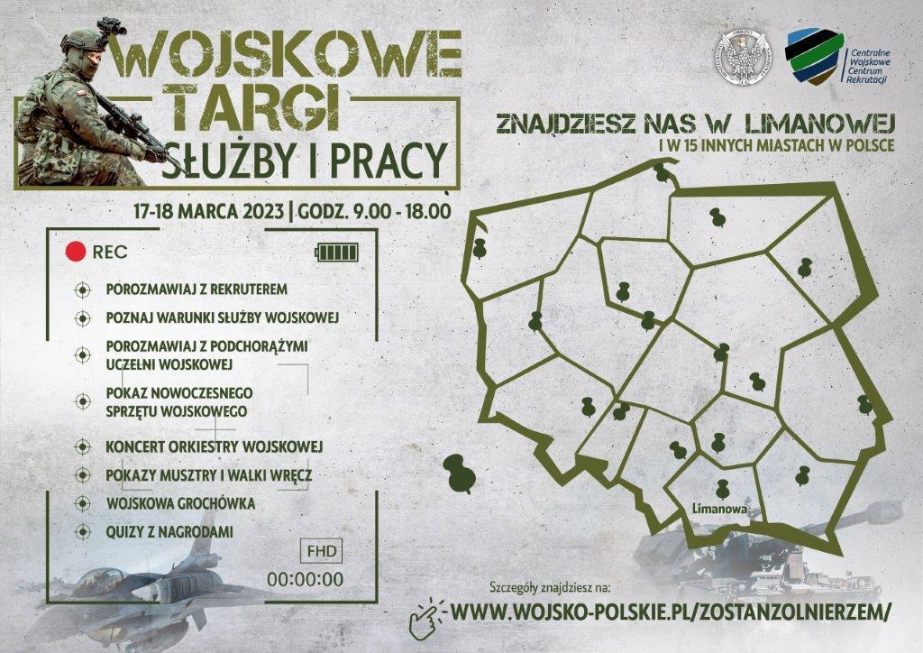 W Małopolsce Wojskowe Targi Służby i Pracy odbędą się w Limanowej – w Limanowskim Domu Kultury, ul. B. Czecha 4, 17-18 marca 2023 r. (piątek – sobota) w godz. 9.00-18.00.