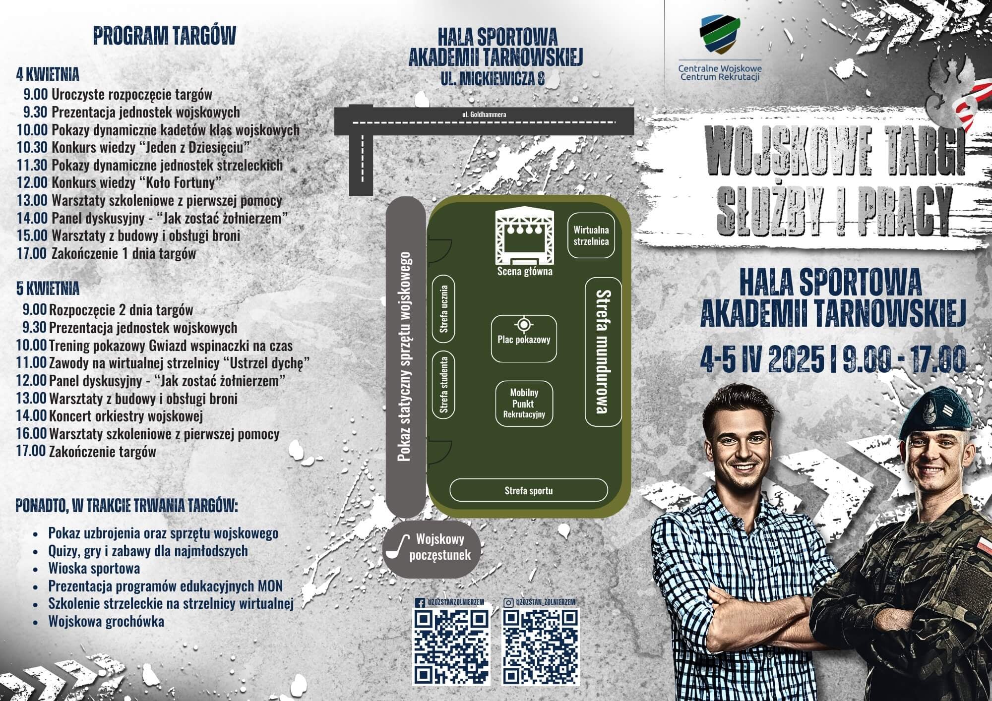 Od 4 do 5 kwietnia 2025 r. w godzinach od 9 do 17 w Hali Sportowej Akademii Tarnowskiej (ul. A. Mickiewicza 8) odbędą się II Wojskowe Targi Służby i Pracy. To szansa dla wszystkich, którzy chcą zasilić szeregi Wojska Polskiego i podjąć nowe wyzwania w swoim życiu.