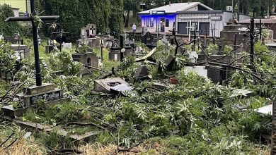Niezwykle smutny widok zastali strażacy zadysponowani do interwencji w Wokowicach. Gwałtowna nawałnica, która przeszła w poniedziałek 7 lipca 2025 r. nad Powiatem Brzeskim, doprowadziła do zawalenia się gniazda bocianów. Metalowa platforma, na której znajdowało się gniazdo, nie wytrzymała ciężaru konstrukcji gniazda i silnego naporu wiatru. W wyniku upadku z wysokosci kilku metrów zginęły dwa młode bociany.