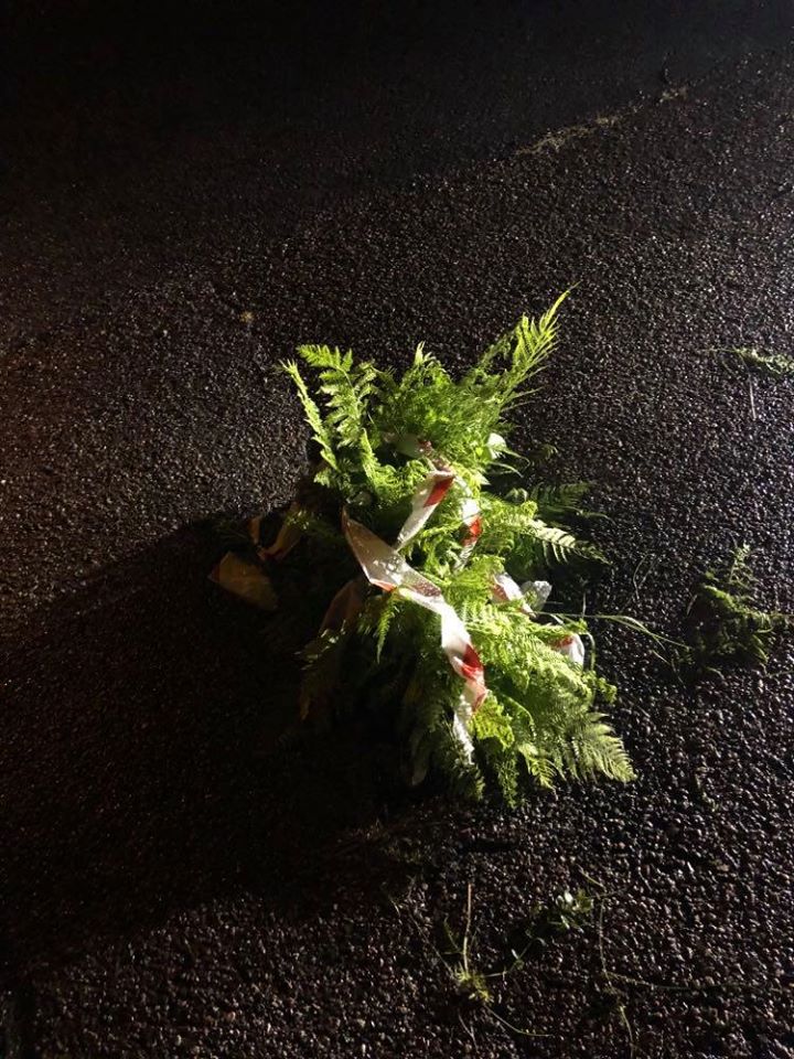 Wczoraj wieczorem ktoś blisko tego baneru zostawił wiązankę przypominającą wiązankę pogrzebową. To jednoznaczne skojarzenie pojawiło się po serii nieprzyjemności, które w ostatnich dniach odczuła mieszkanka Złotej – czytamy na Spotted: Brzesko.