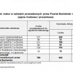 W szkołach dla których organem prowadzącym jest Powiat Bocheński do matury przystąpiło 768 osób. Maturę zdało 665 czyli ponad 86 %. W całej Polsce zdawalność wyniosła 74 %, w Małopolsce 78 %.