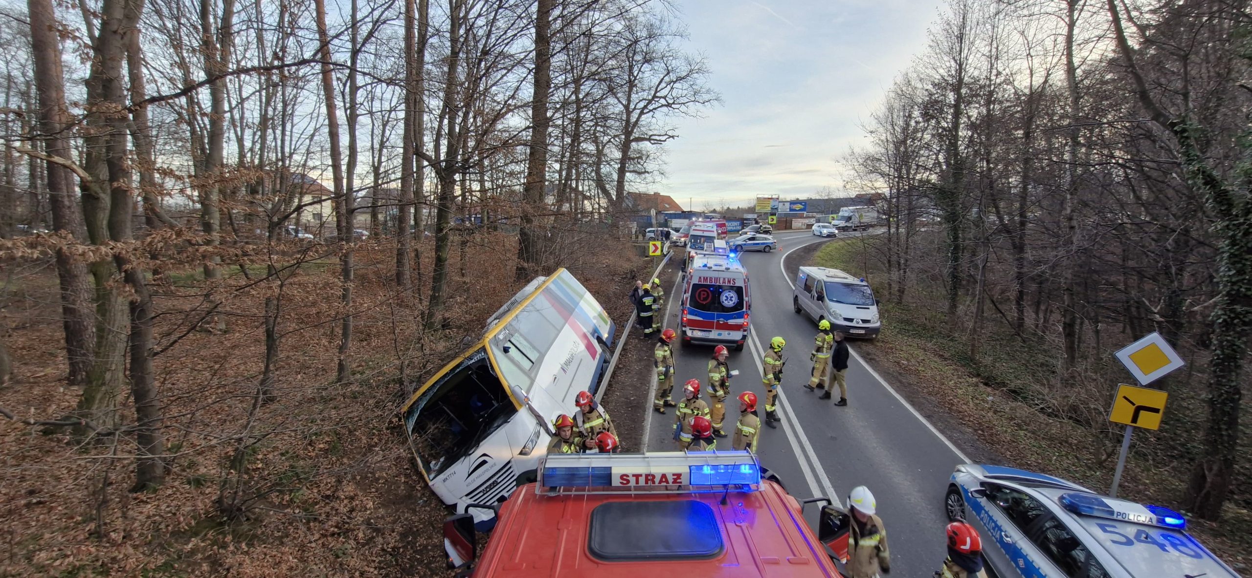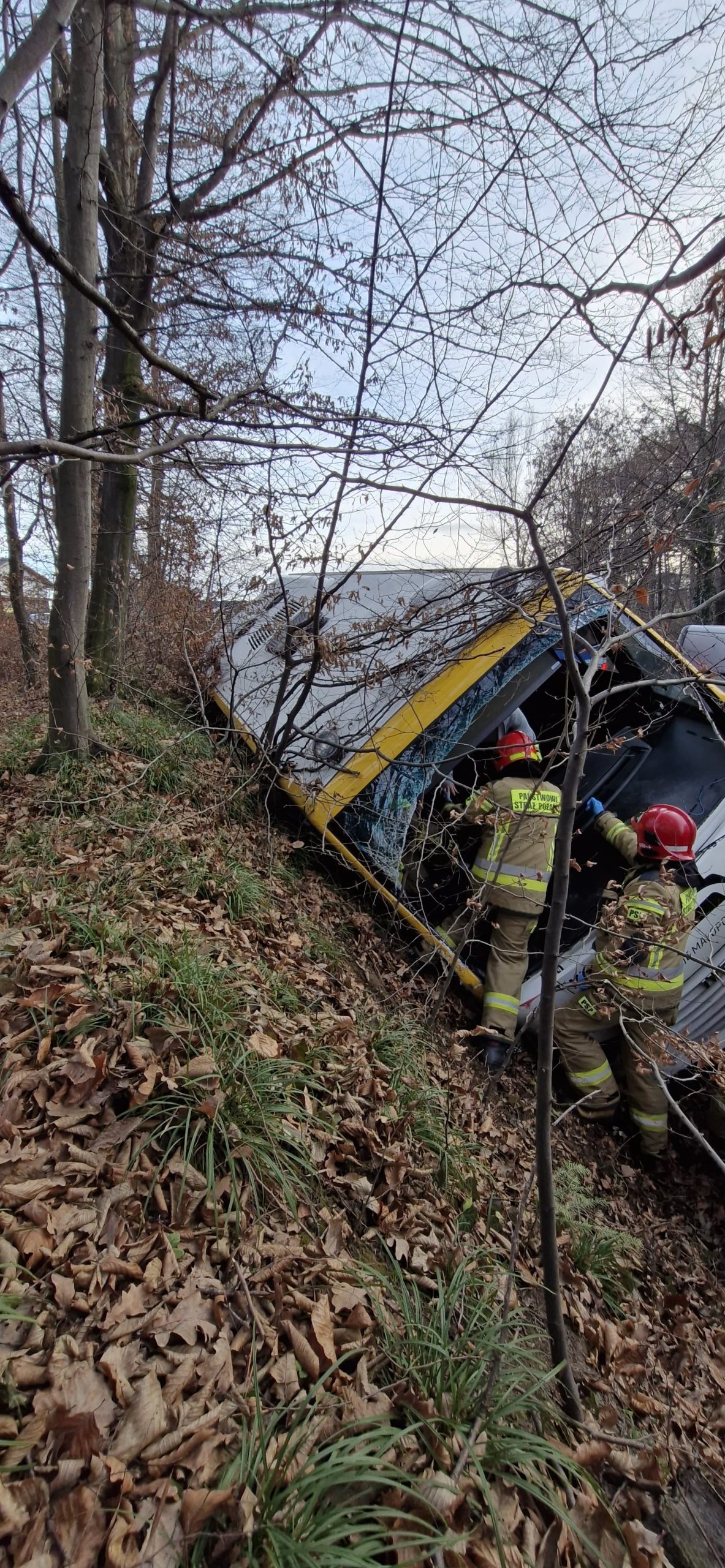 Wypadek autobusu Małopolskich Linii Dowozowych w Kopalinach / zdjęcia