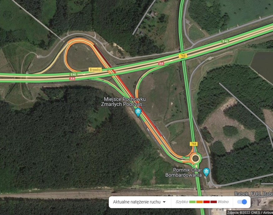 Mapa natężenia ruchu – węzeł Brzesko godz. 19.30