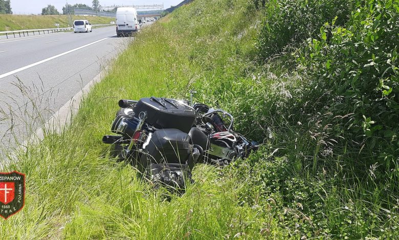 W czwartek 30 maja 2024 r. około godz. 12.40 na autostradzie A4 na wysokości Sterkowca (475 km, pas w kierunku Tarnowa) doszło do wypadku drogowego z udziałem motocyklisty.