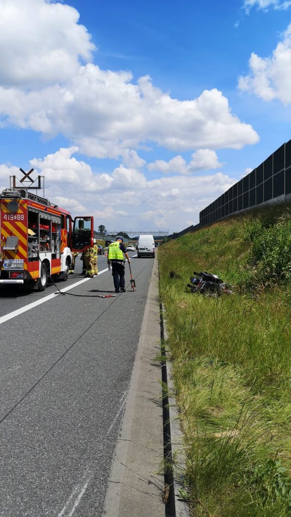 Wypadek motocyklisty na autostradzie A4 na wysokości Sterkowca / 30 maja 2024 r.