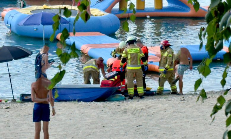 Wypadek na kąpielisku w Jurkowie. Mężczyzna z urazem kręgosłupa ewakuowany śmigłowcem LPR / 10 lipca 2024 r.