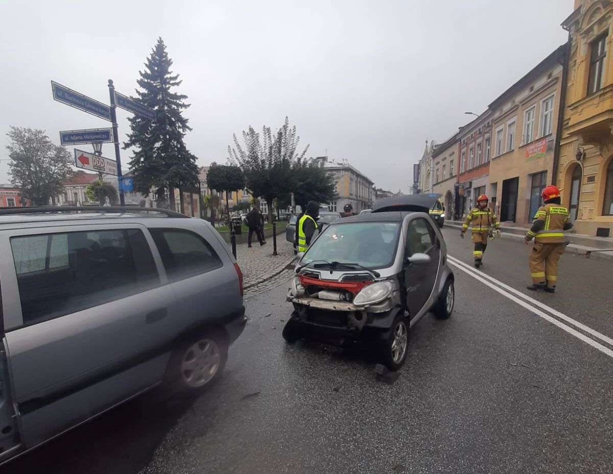 Wypadek na rynku w Brzesku. Zderzenie Smarta i taxi / zdjęcia / 4 października 2024 r.