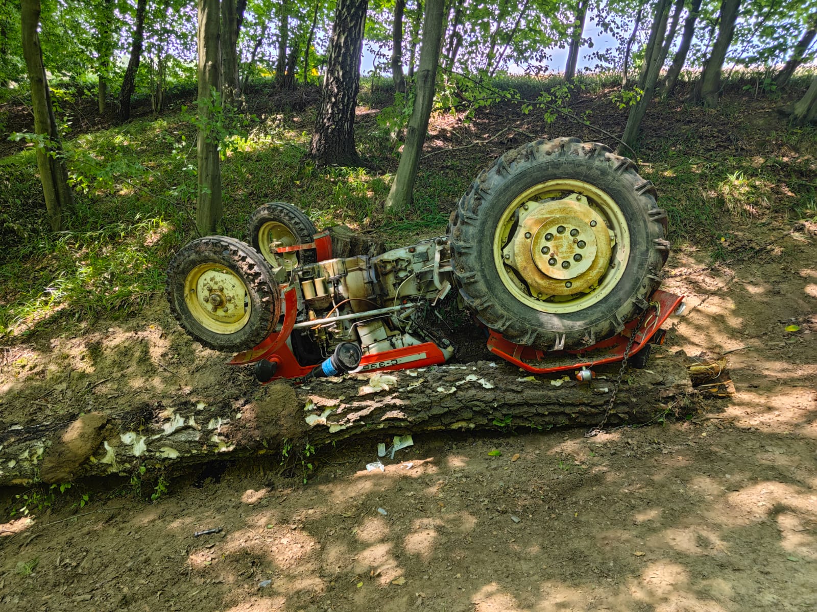 Wciągając drewno pod górkę, w pewnym momencie bal drewna wbił się z ziemię, a ciągnik obrócił się wokół osi napędowej. Pojazd przewracając się, przygniótł kierowcę.