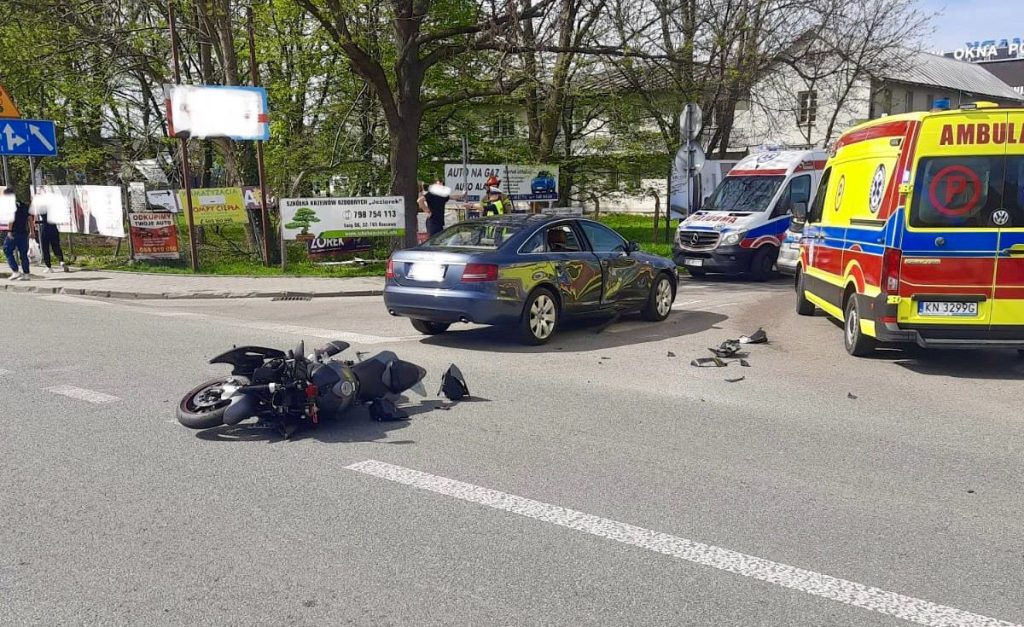 W niedzielę 7 kwietnia 2024 r. w godzinach popołudniowych na ul. Mickiewicza w Brzesku (w ciągu drogi krajowej nr 75) doszło do zderzenia motocykla oraz samochodu osobowego.