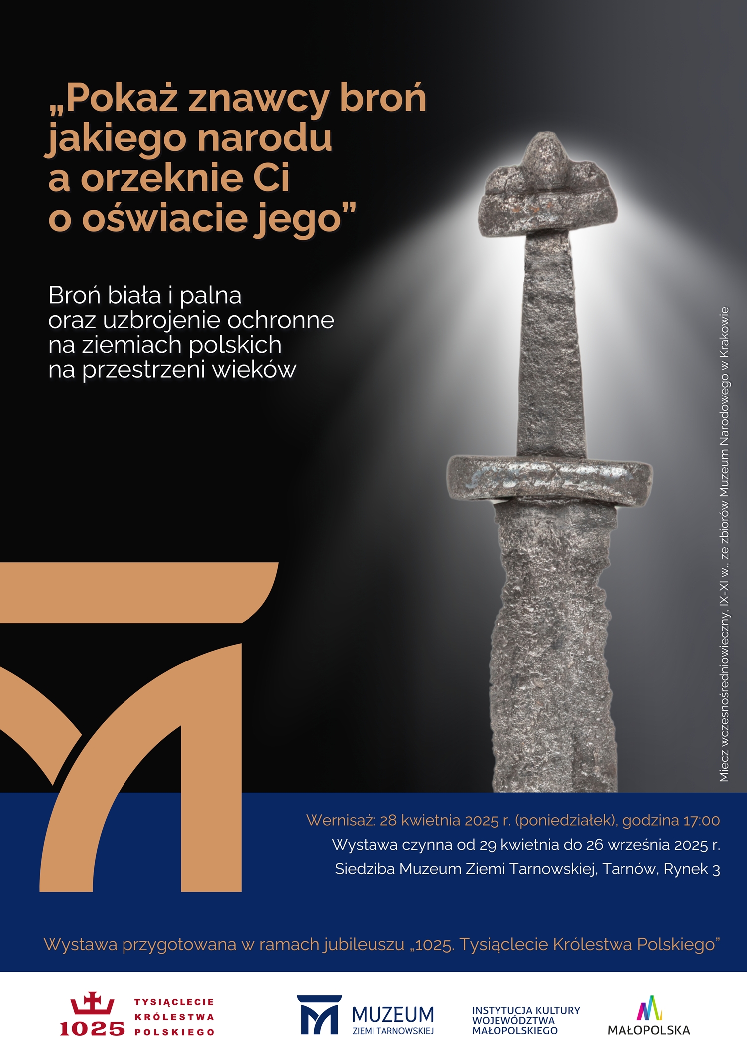 Muzeum Ziemi Tarnowskiej zaprasza na pierwszą w swojej historii tak kompleksową wystawę, poświęconą broni i uzbrojeniu ochronnemu na ziemiach polskich. Zwiedzający będą mogli zobaczyć kilkaset eksponatów, w tym prehistoryczne topory, groty, średniowieczne miecze, nowożytne elementy uzbrojenia ochronnego, uzbrojenie z czasów powstań narodowych, a także legendarne polskie szable wz. 21 i wz. 34. Całość dopełni współczesne umundurowanie oficera Wojska Polskiego.