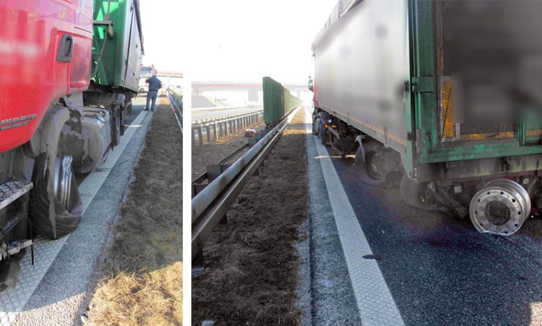 W samochodzie ciężarowym doszło do pęknięcia opony, w następstwie pojazd uderzył w bariery energochłonne. Z naczepy na jezdnię wysypała się również część przewożonego węgla, który zaścielił jezdnię na dystansie 300 metrów.