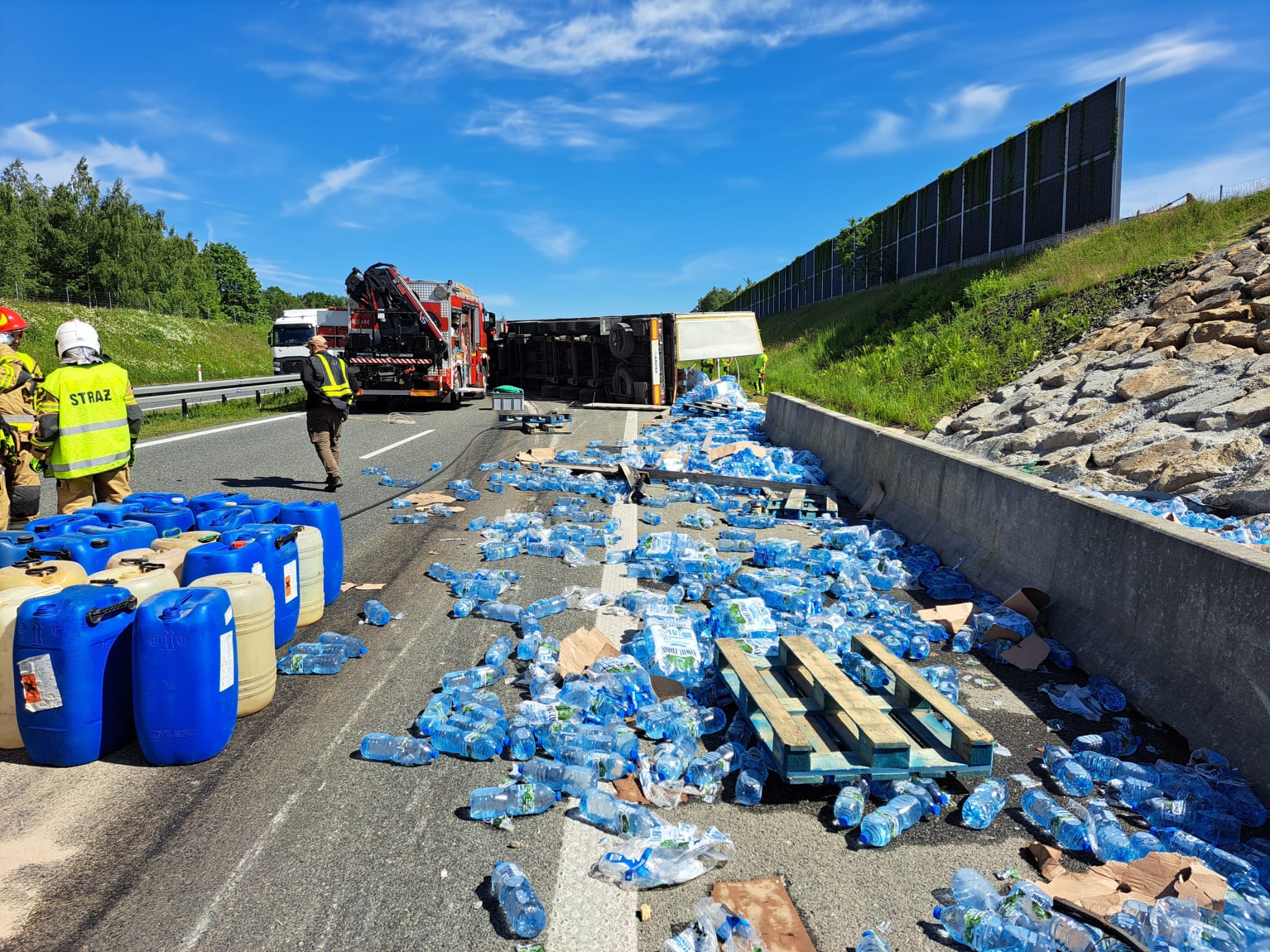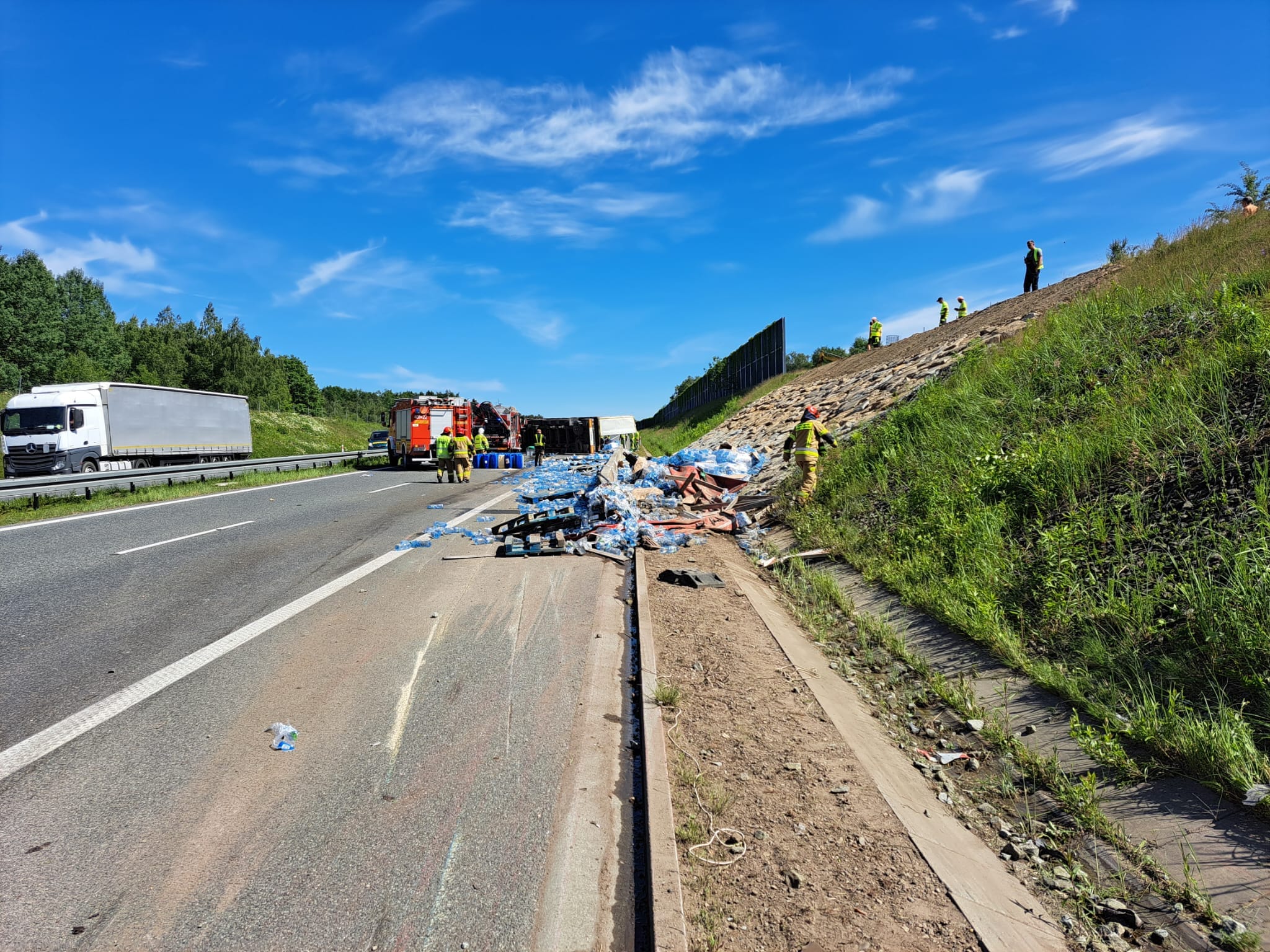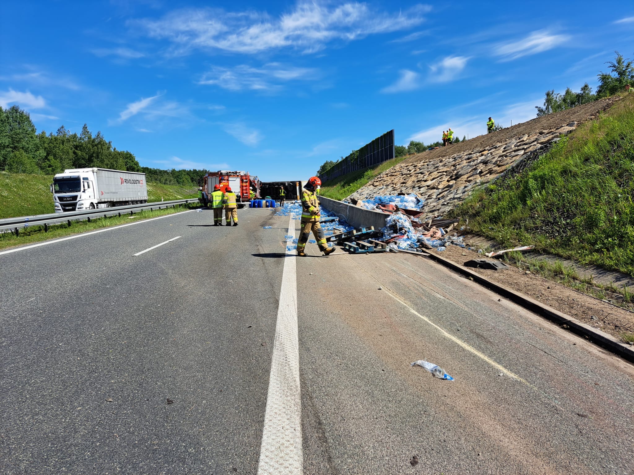 Ciężarówki, które utknęły w zatorze, na ten moment muszą czekać, aż będzie możliwość ich zawrócenia, bądź po postawieniu na koła przewróconej ciężarówki możliwość jej objechania.