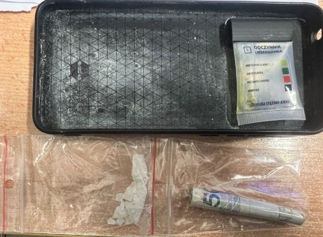 31-latek stracił prawo jazdy, ale jak się okazało były, to pierwsze i nie ostatnie tego dnia konsekwencje dla mieszkańca Krakowa. W trakcie kontroli pojazdu na siedzeniu pasażera policjanci zauważyli sylikonowe etui na telefon komórkowy. Czarna osłona mająca docelowo chronić telefon przed uszkodzeniem pokryta była fragmentami białego proszku, a tuż obok niej leżał zwinięty w rulon banknot. Mężczyzna przyznał się do tego, że są to pozostałości po narkotykach, które brał kilka godzin wcześniej. Co więcej, podczas przeszukania pojazdu funkcjonariusze znaleźli kolejne substancje zakazane, które przebadano testerem. Wynik przeprowadzonego badania wykazał, że w obu przypadkach był to mefedron. Mężczyzna został zatrzymany. W związku z podejrzeniem, że mógł kierować samochodem, będąc pod wpływem środków odurzających pobrano mu krew do dalszych badań.