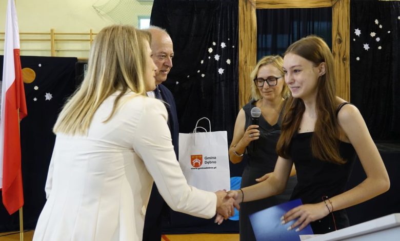 Absolwenci przekazali sztandar swoim młodszym kolegom, odebrali świadectwa ukończenia szkoły, nagrody ufundowane przez Radę Rodziców oraz Wójta Gminy Dębno i złożyli uroczyste ślubowanie.