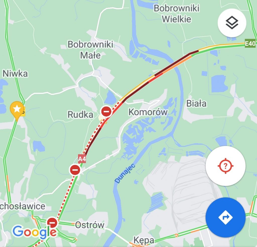 Autostrada jest całkowicie zablokowana. Ze względu na skale zdarzenia również węzeł w Brzesku został zamknięty. Z tego powodu na zjeździe z autostrady w Brzesku utworzył się korek.