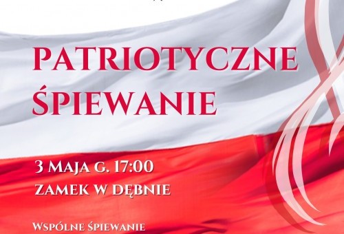 Wójt Gminy Dębno Wiesław Kozłowski, Dębińskie Centrum Kultury oraz Muzeum Ziemi Tarnowskiej – Oddział Zamek w Dębnie serdecznie zapraszają na kolejną edycję wydarzenia pn. „Patriotyczne Śpiewanie” w dębińskim zamku.