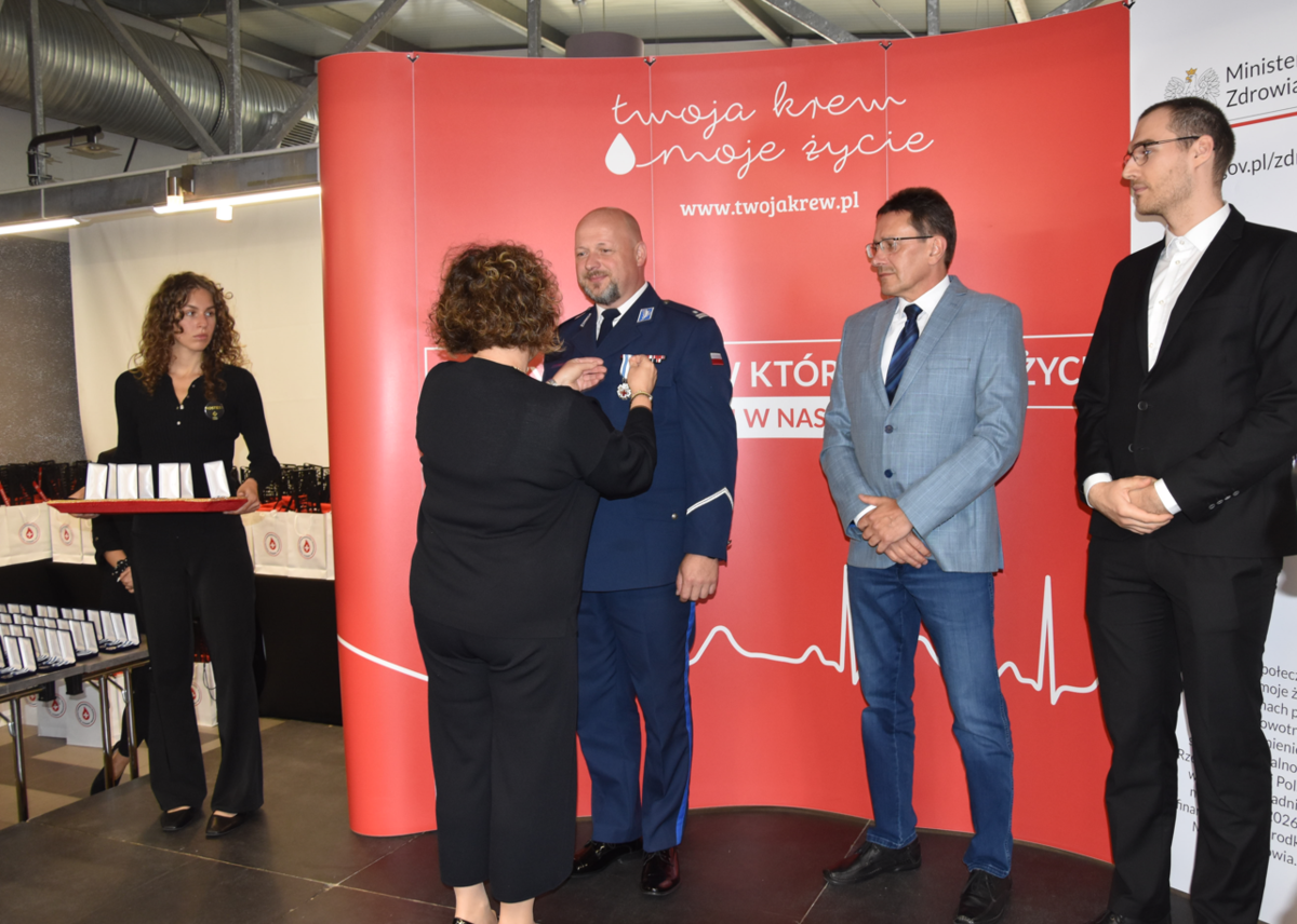 Komendant Powiatowy Policji w Bochni podinsp. Jarosław Kmieć odebrał w piątek odznakę nadaną przez ministra zdrowia. Wyróżnienie, które otrzymał „Honorowy Dawca Krwi – Zasłużony dla zdrowia narodu” – przyznawane są osobom, które w ramach krwiodawstwa oddały 20 litrów krwi.