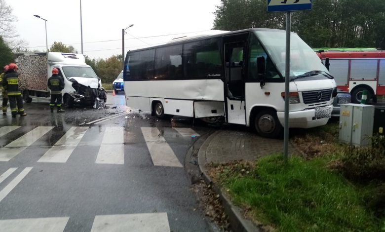 Zderzenie busa przewożącego dzieci i dostawczaka