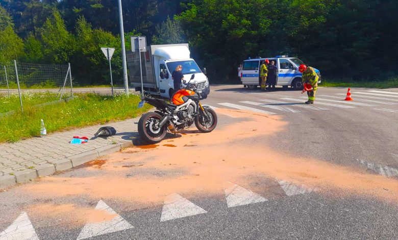 Zderzenie motocyklisty i samochodu osobowego na skrzyżowaniu Leśnej i Gajowej w Brzesku / 29 sierpnia 2024 r.
