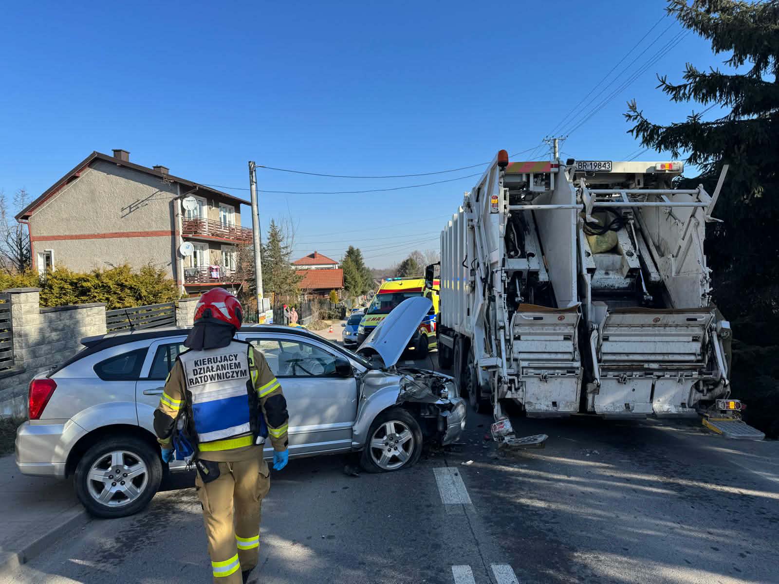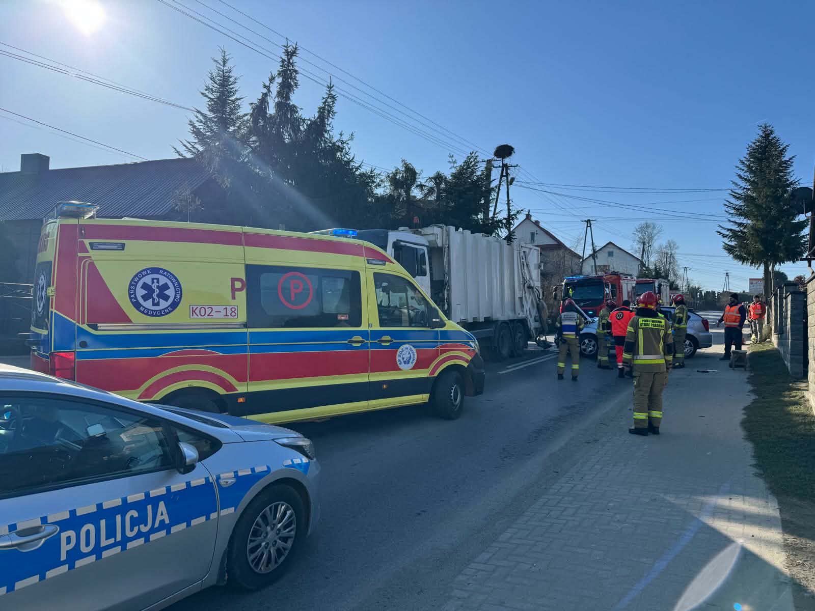 W poniedziałek, 9 marca 2026 r. około godziny 10:00, na ul. Wiślanej w Mokrzyskach (gmina Brzesko) doszło do zderzenia samochodu osobowego ze śmieciarką. W wyniku zdarzenia jedna osoba została poszkodowana i trafiła do szpitala.