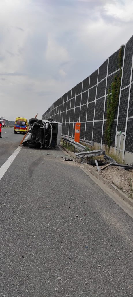 Doszło tam do najechania samochodu osobowego na tył pojazdu typu bus, który dachował. W efekcie na czas prowadzenia akcji ratowniczej autostrada w kierunku Krakowa była całkowicie zablokowana.