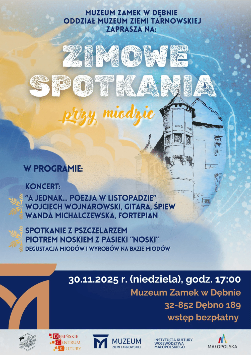 Muzyka, miód i malarstwo. W zabytkowych salach Muzeum Zamek w Dębnie w najbliższą niedzielę, 30 listopada 2025 r. o godz. 17:00, odbędą się „Zimowe Spotkania przy Miodzie”. Będzie to ostatnie wydarzenie w murach zamku przed planowanym remontem. Wstęp jest bezpłatny.