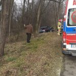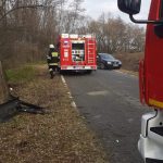 Wg informacji jakie otrzymaliśmy samochód osobowy wypadł z drogi i uderzył w przydrożne drzewo. Na czas prowadzenia akcji ratowniczej droga była nieprzejezdna.
