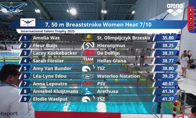 Pierwsze miejsce i historyczny rekord zawodów Arena International Talent Trophy 2025 wywalczyła w holenderskim Eindhoven Amelia Wąs, zawodniczka klubu pływackiego Stowarzyszenie Olimpijczyk Brzesko.