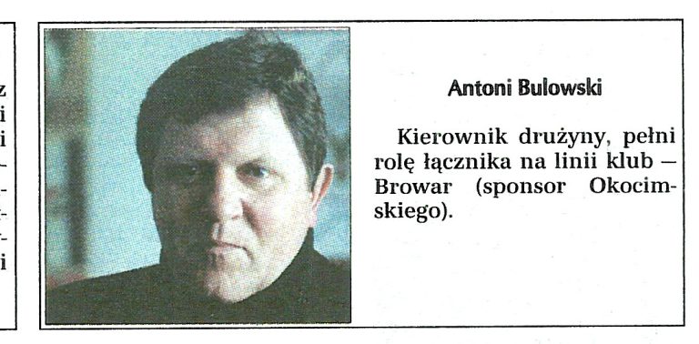 Antoni Bulowski to były, wieloletni zawodnik sekcji piłki nożnej (debiutował w 1 zespole Okocimskiego w 1969 roku). Po zakończeniu czynnego uprawiania sportu był związany z brzeskim klubem jako działacz. Przez wiele lat pełnił również funkcję członka zarządu. Był także wiceprezesem ds. organizacyjnych oraz kierownikiem drużyny Okocimskiego, gdy ta występowała pod koniec lat 90-tych w II lidze.