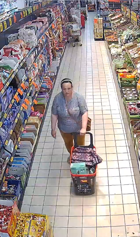 Policjanci z Komisariatu Policji Tarnów-Centrum przyjęli zawiadomienie o kradzieży ze sklepu Biedronka w Tarnowie przy ul. M.B. Fatimskiej. Przeprowadzone dotychczas czynności zarówno operacyjne, jak i procesowe doprowadziły do ustalenia wizerunku osoby, jednak nie udało się ustalić jej tożsamości. Kamery sklepowe w dniu 15.06.2024 roku zarejestrowały kobietę, która po zrobieniu zakupów wyjechała pełnym wózkiem poza linie kas nie uiszczając opłaty za wywieziony towar. Skradła 14 sztuk kaw Jacobs, mikser ręczny Hoffen oraz torby cooler o łącznej wartości 1008,84 złotych.