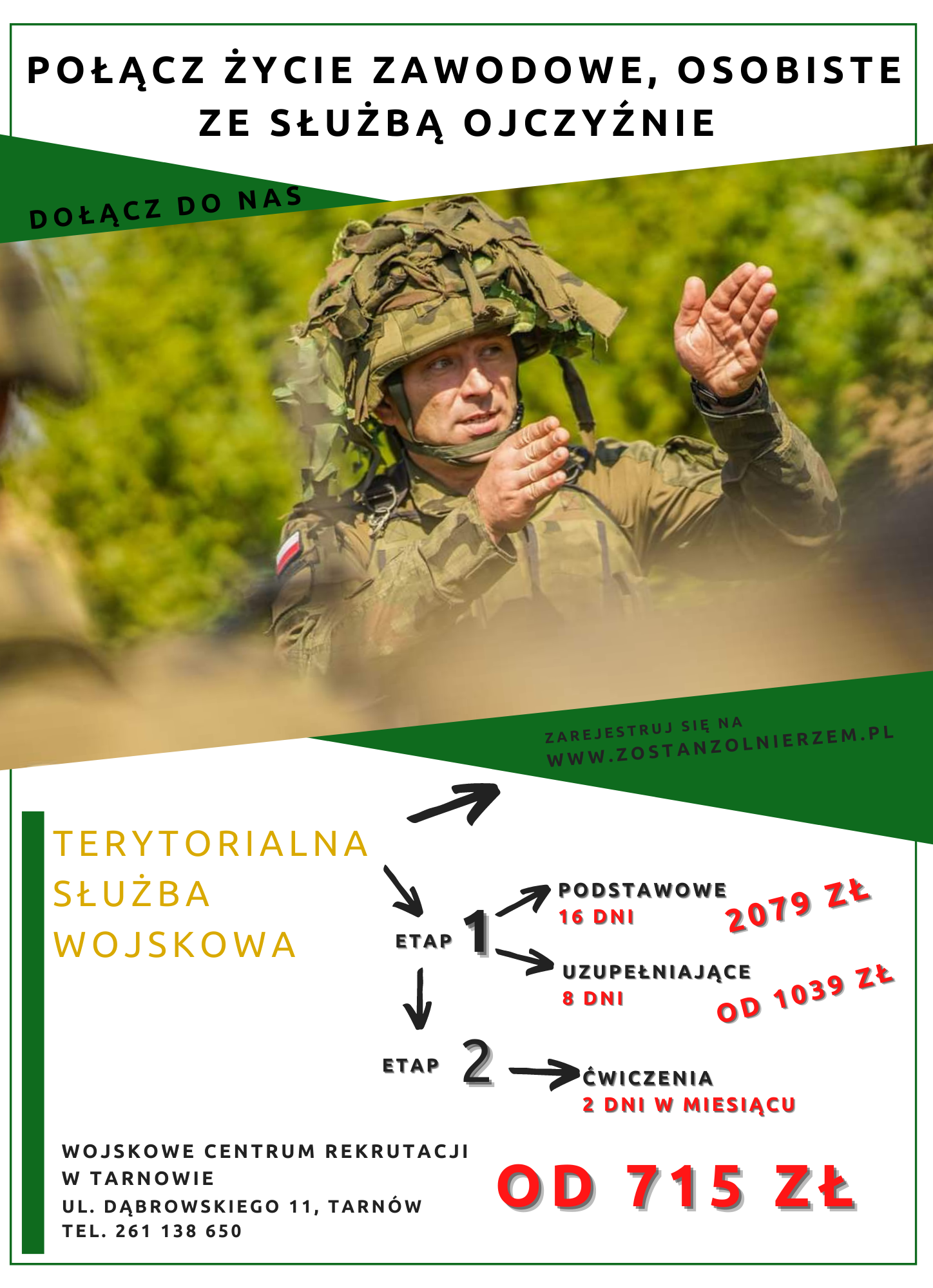 Wojskowe Centrum Rekrutacji w Tarnowie prowadzi nabór do nowego rodzaju służby wojskowej, która została wprowadzona przełomowym dokumentem dla obronności RP i polskich sił zbrojnych – Ustawą o obronie Ojczyzny.