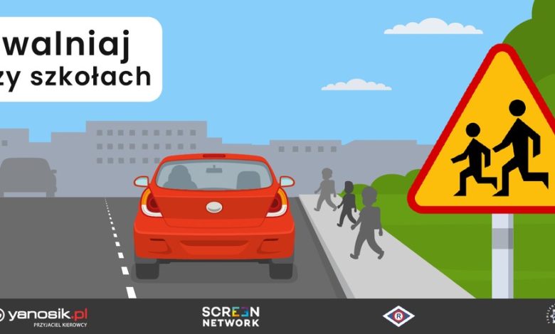 W trosce o bezpieczeństwo dzieci i młodzieży, w okresie od 4 do 30 września br., Policja wspólnie z firmą Neptis S.A. – operatorem aplikacji Yanosik oraz firmą Screen Network S.A., dysponującą ekranami LED rozmieszczonymi na terenie całego kraju będzie prowadziła akcję pn. Zwalniaj przy szkołach.