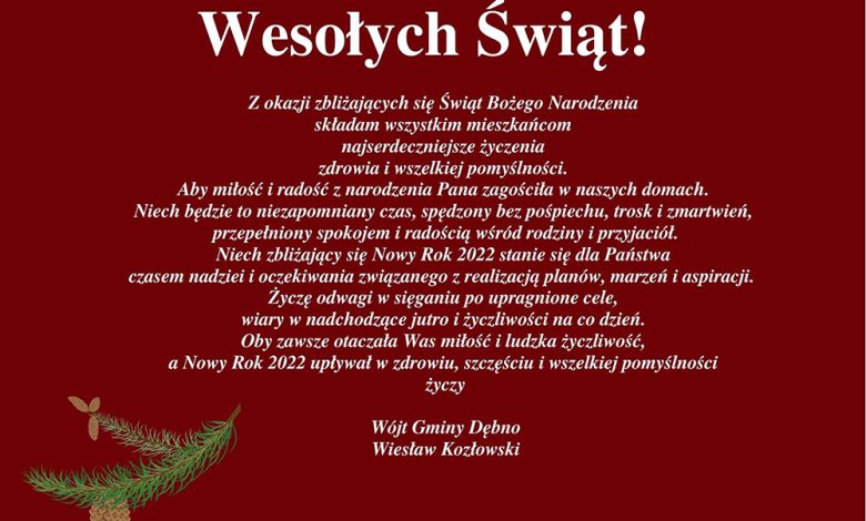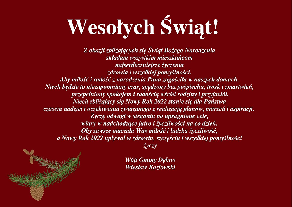 Życzenia Boże Narodzenie 2021 – Wiesław Kozłowski Wójt Gminy Dębno