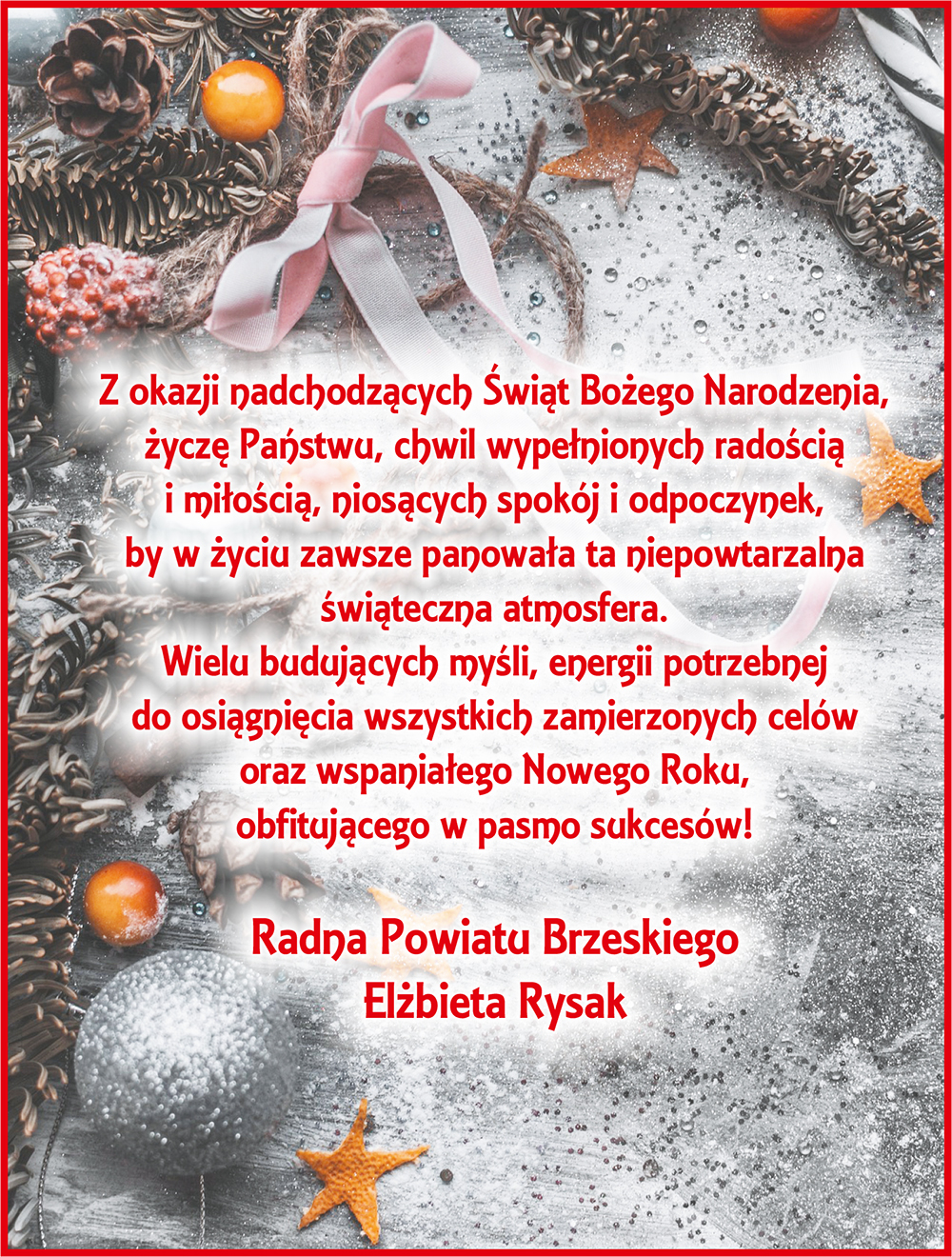 -- Życzenia Boże Narodzenie 2022 - Elżbieta Rysak Radna Rady Powiatu Brzeskiego