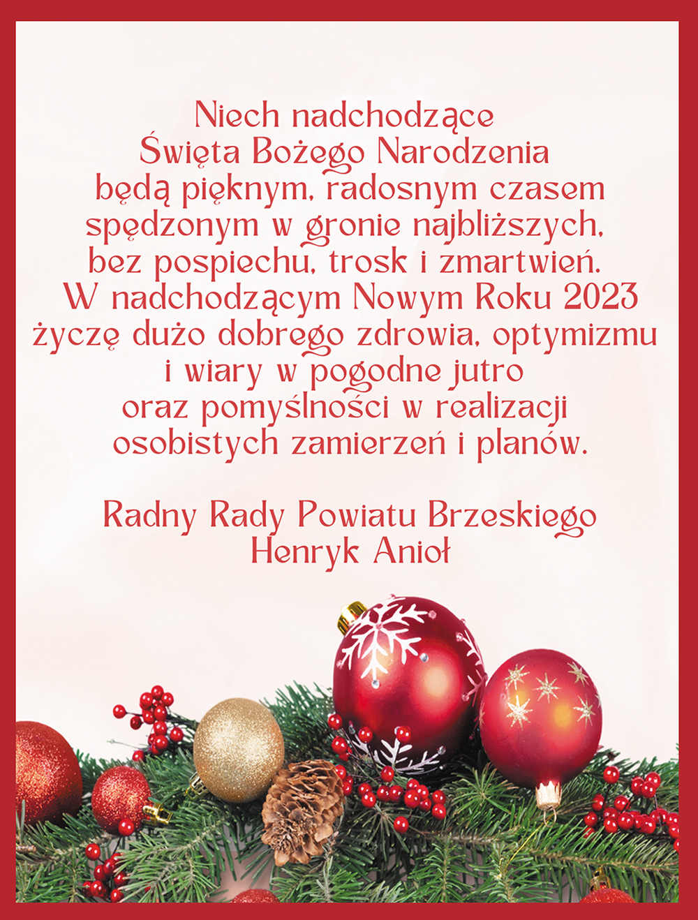 -- Życzenia Boże Narodzenie 2022 - Henryk Anioł Radny Rady Powiatu Brzeskiego