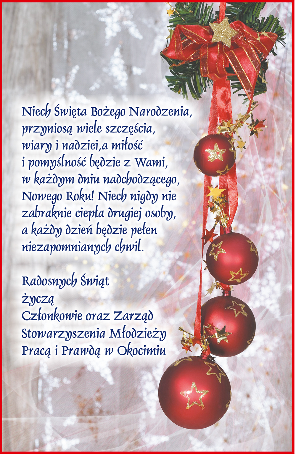 -- Życzenia Boże Narodzenie 2022 - Stowarzyszenie Młodzieży Praca i Prawdą w Okocimiu