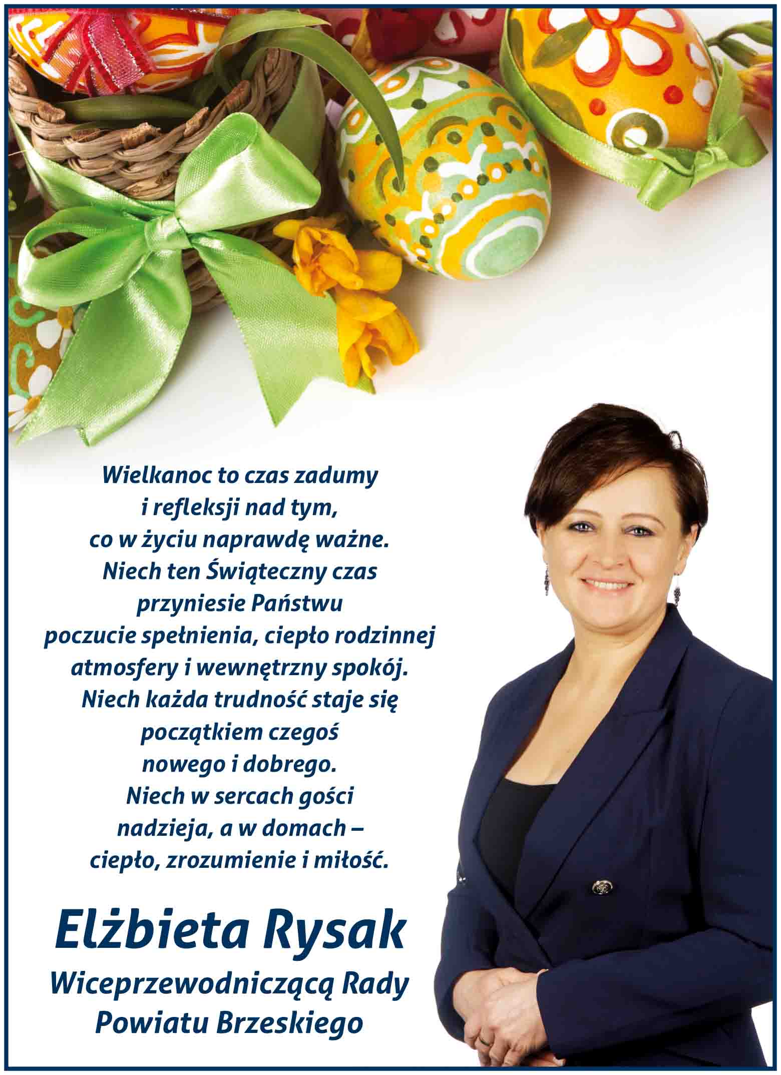 Życzenia składa: Elżbieta Rysak – wiceprzewodnicząca Rady Powiatu Brzeskiego / Wielkanoc 2026