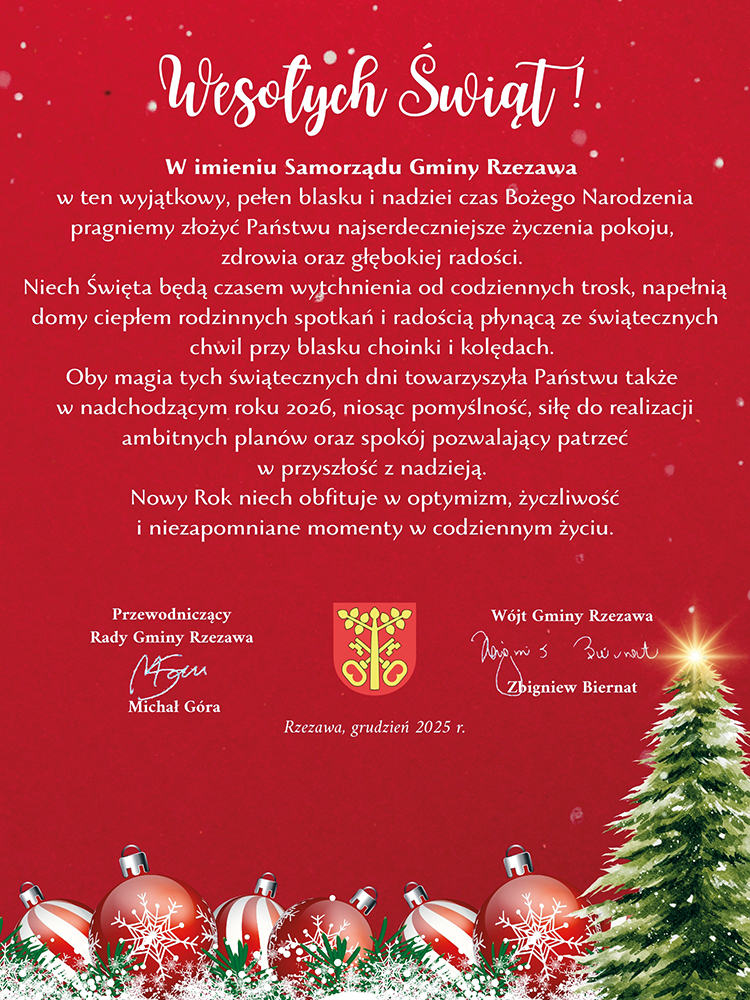 Życzenia z okazji Bożego Narodzenia od Wójta Gminy Rzezawa Zbigniewa Biernata i Przewodniczącego Rady Gminy Michała Góry